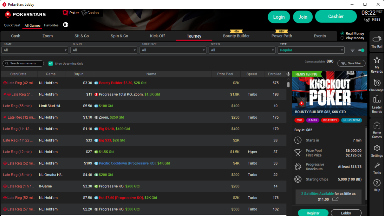 PokerStars hosts multi-table poker tournaments starting at $0.55 buy-ins, chasing real money payouts. Players who follow the Power Path, beginning at entry-level Sit & Go and spins, can also win tournament tickets, including high-value Gold Passes worth $10,000.